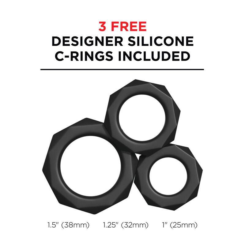 The internal push mechanism is completely concealed inside and features 2 metal "grab" rings around the sleeve that knock and squeeze the shaft. Each ring is lined with a row of pleasure beads that roll up and down the shaft, while the super soft TPR sleeve wraps around every inch of the penis. The rechargeable motor offers pro-level performance with 2 levels of intense movement speeds, 3 powerful suction modes, and 5 exciting vibration patterns that will drive you crazy.